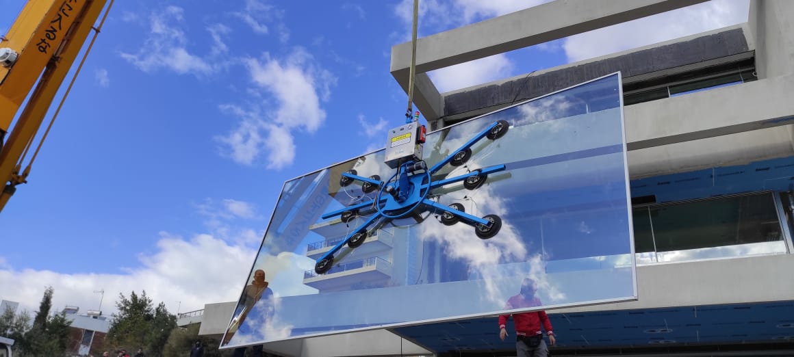 這種電動式旋轉吸盤適用于安全地升降和運送表面平整的板材,如玻璃、金屬、石板、木板等